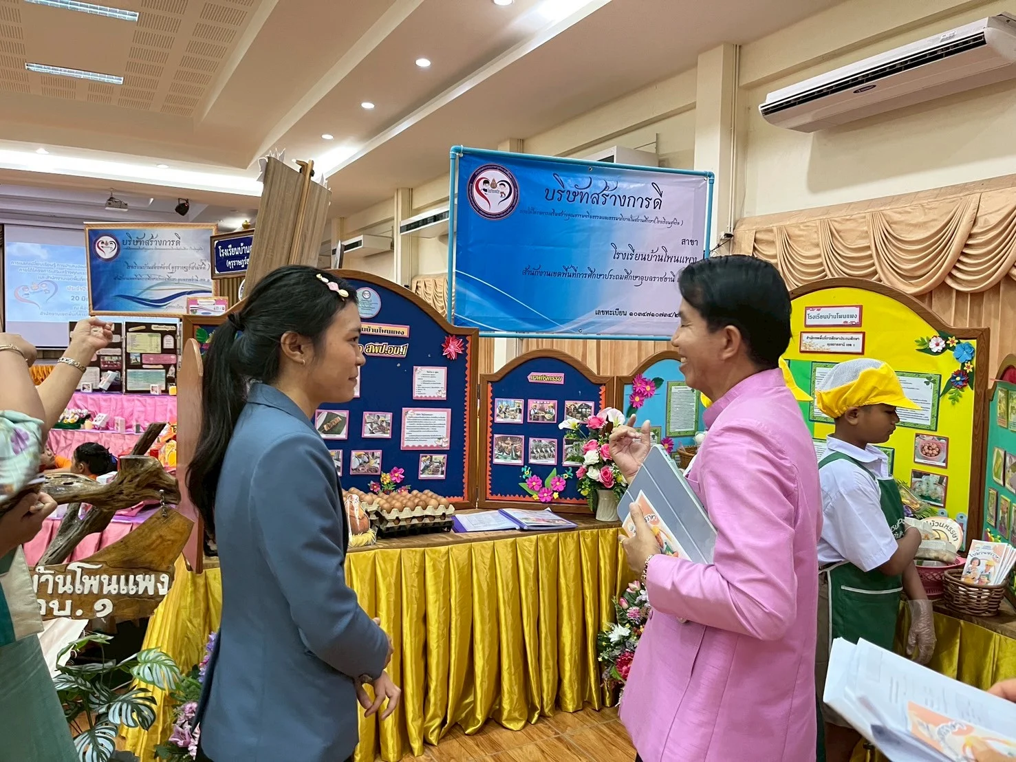 วันที่ 20 มิถุนายน 2568 นางกมลทิพย์ ดอกอินทร์ ผู้อำนวยการโรงเรียนบ้านโพนแพงคณะครูและนักเรียน ได้เข้าร่วม “การแลกเปลี่ยนเรียนรู้ การนำเสนอผลงาน การประกวดแข่งกันกิจกรรมการเรียนรู้ ภายใต้โครงการเสริมสร้างคุณธรรม จริยธรรมและธรรมาภิบาลในสถานศึกษา(โรงเรียนสุจริต) ” ณ สำนักงานเขตพื้นที่การศึกษาประถมศึกษาอุบลราชธานี เขต 1 โดยโรงเรียนบ้านโพนแพงได้ นำเสนอผลงานดังต่อไปนี้ 1) กิจกรรมบริษัทสร้างการดี(ไข่ม้วนหรรษา) 2) กิจกรรมถอดบทเรียน (Best Practice) ผู้บริหาร 3) กิจกรรมถอดบทเรียน(Best Practice) ครู 4) กิจกรรมการใช้และหลักสูตรประเมินผลหลักสูตรต้านทุจริต 5) หนังสือเล่มเล็กจากการใช้หลักสูตรต้านทุจริตศึกษาฯ ระดับประถมศึกษาปีที่ 1-3 6) หนังสือเล่มเล็กจากการใช้หลักสูตรต้านทุจริตศึกษาฯระดับประถมศึกษาปีที่ 4-6 ซึ่งการนำเสนอผลงานผ่านไปด้วยดี